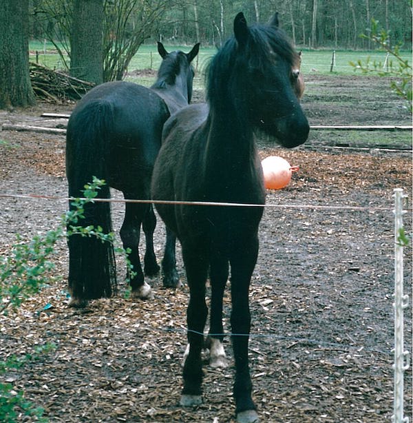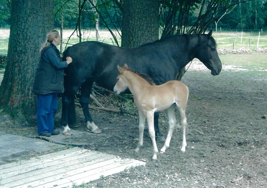 My Jule was a mare marked “black, broad, strong, fast.” I wanted to fulfill my dream of having my own foal and had found a suitable father in the delightful Welsh-Cob stallion Balou. I thought it was very romantic that for a while we were together on the road. Freya was born in June 2004, our son in July. So I had little capacity for the foals. Nevertheless, I enjoyed the sight of the growing youngsters and their mothers in the meadow. Freya proved to be a lot more nervous than Frieda, even though she was weaned at the age of one year. I even had to clickertrain her to let me touch her legs, because she used to jerk and pull away. I wouldn’t do that anymore today, but back then, she got the nickname “Hysterica”. Of course, I trained her, but I preferred Frieda – she was easier to ride and handle, more human oriented. Then came Horse Agility, and Freya developed real speed. With a lot of nerve training I made her fit for performances and I am always grateful for this new kind of bonding, which would never have been created without Frieda’s refusal to participate in fairs. Doing Agi with her feels like driving a Porsche.